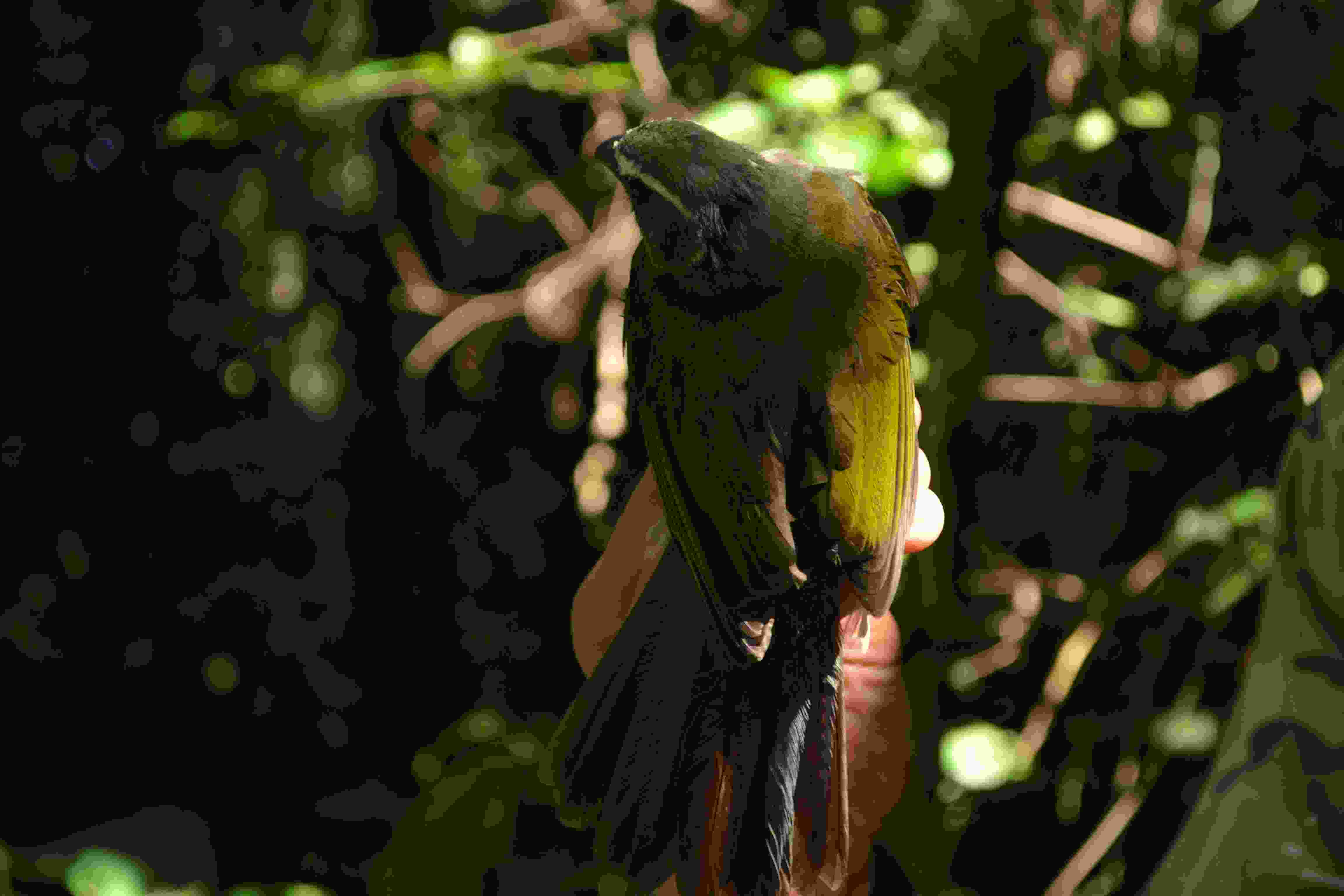 FCF - U: Limites de muda entre penas juvenis (baixa qualidade) e penas formativas (boa qualidade) geralmente nas grandes coberteiras, alulas e entre grandes coberteiras e coberteiras das primárias. O limite pode ser detectado comparando a qualidade e intensidade de verde entre as penas. Rectrizes em geral pontiagudas. Pode reter comissura labial e/ou ponta do bico amarelado. Iris castanha. Crânio em geral fechado, mas é possível indivíduos com janelas.