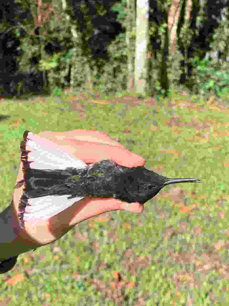FPJ - U: De forma geral, o esperado para identificar essa classe de idade seria observar muda das penas de remiges todas ao mesmo tempo e presença de >75% de corrugação de bico. Além disso, penas com características de juvenis, que em beija-flores em geral se caracteriza por uma borda acobreada.